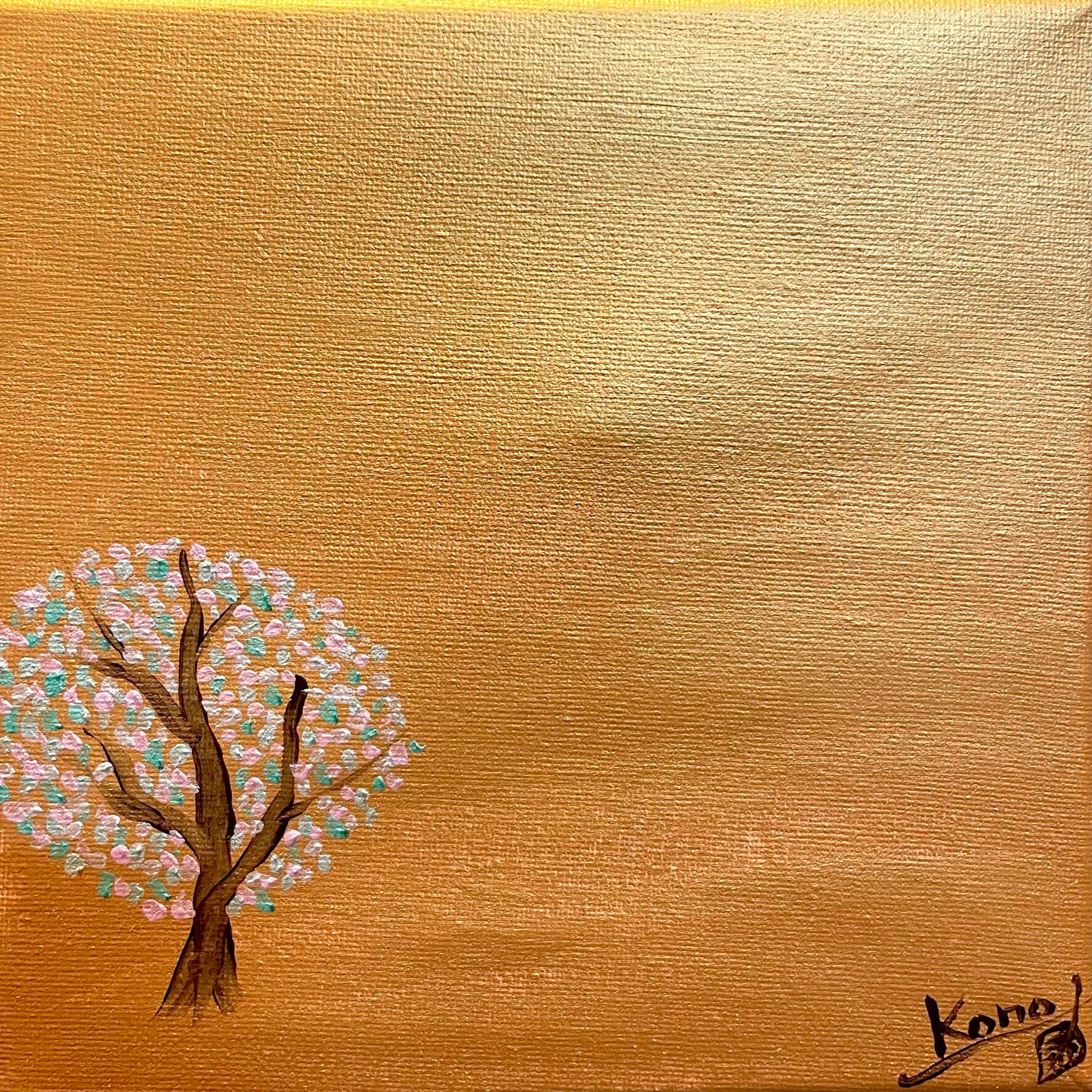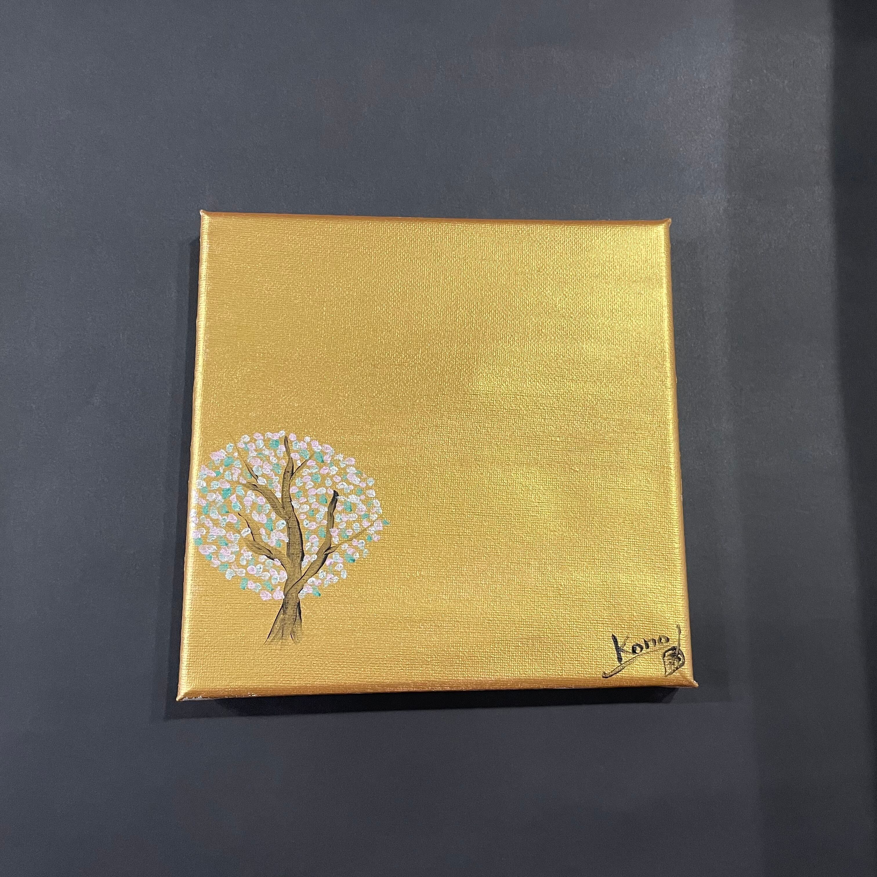 「ハナミズキの木 金」アクリル画 キャンバス(180mm×180mm)