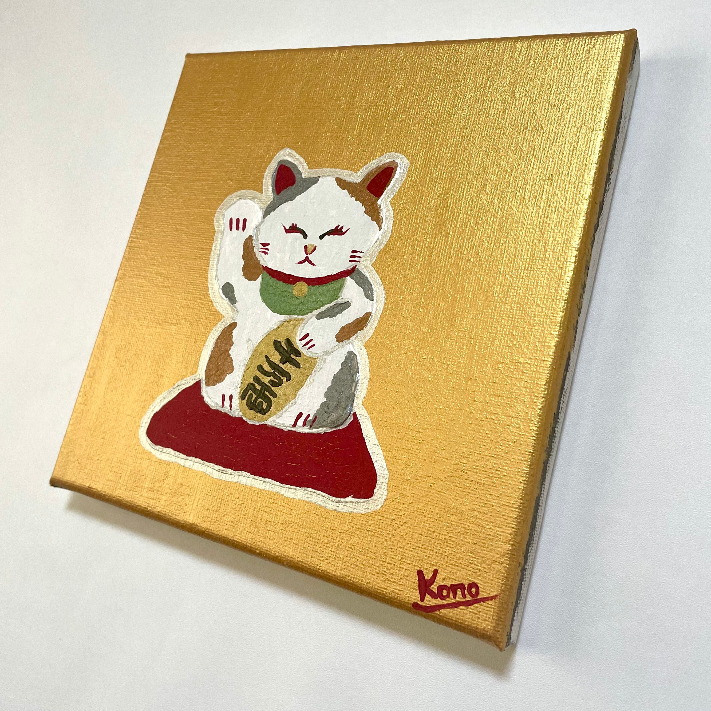 「まねきねこ様(三毛)」アクリル画 キャンバス(180mm×180mm)