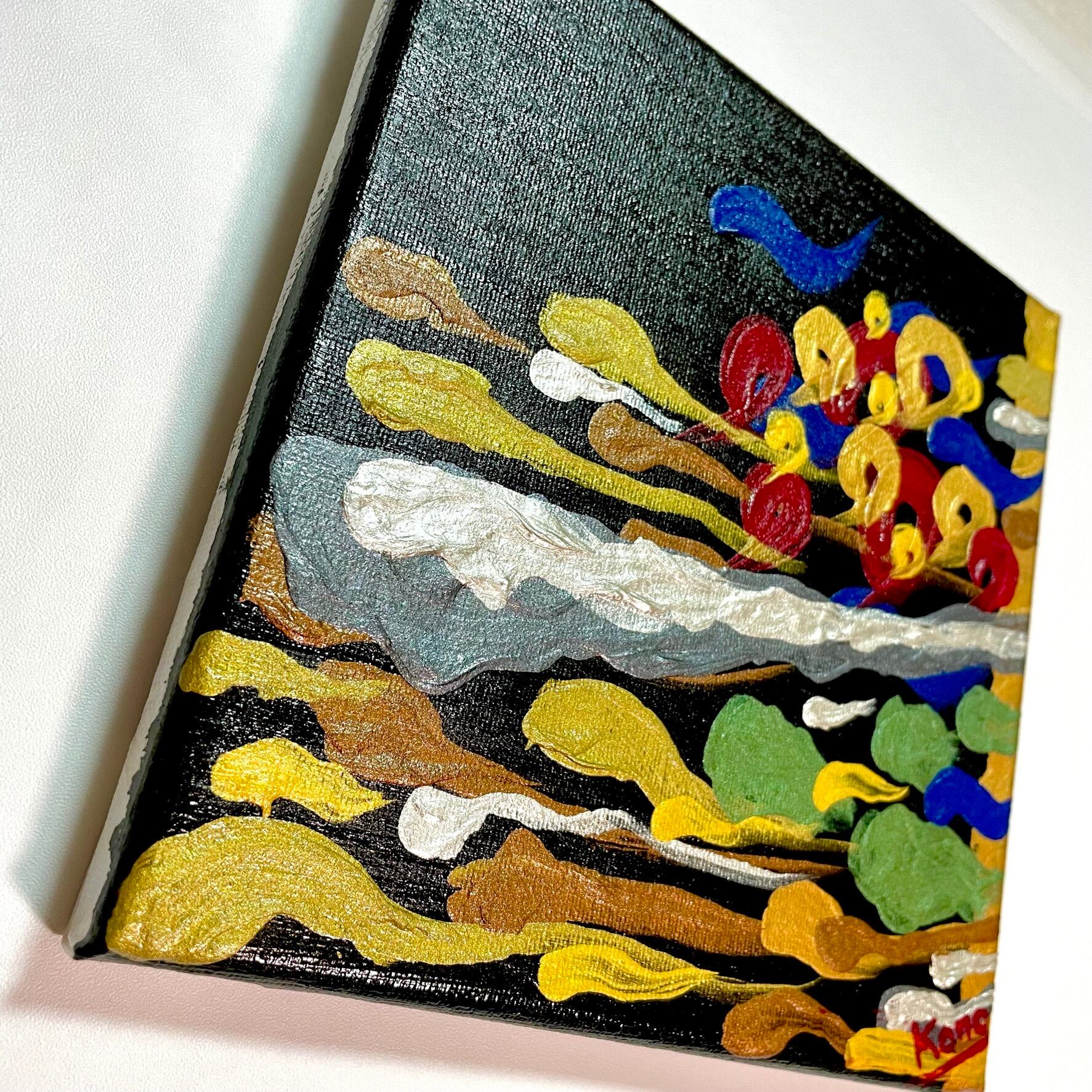「ひげの説法 しゃかの説法」アクリル画 キャンバス(180mm×180mm)